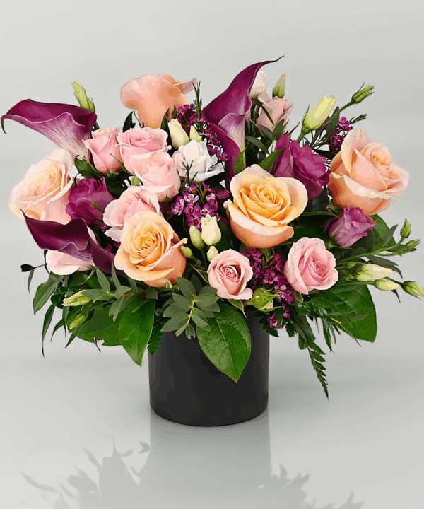 A soft, graceful mix of roses, calla lilies, and accent blooms — designed to express love and care in every season.