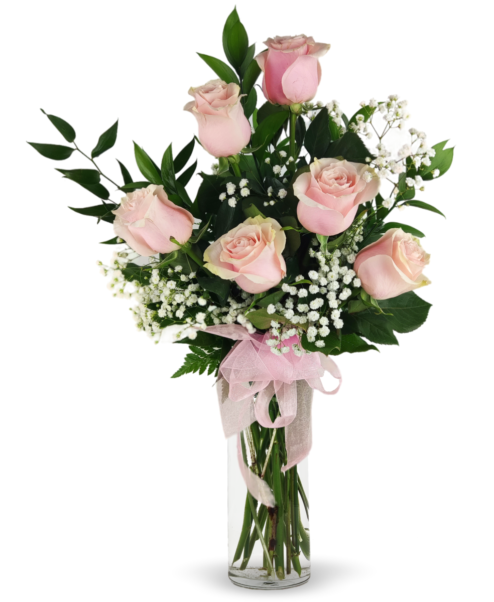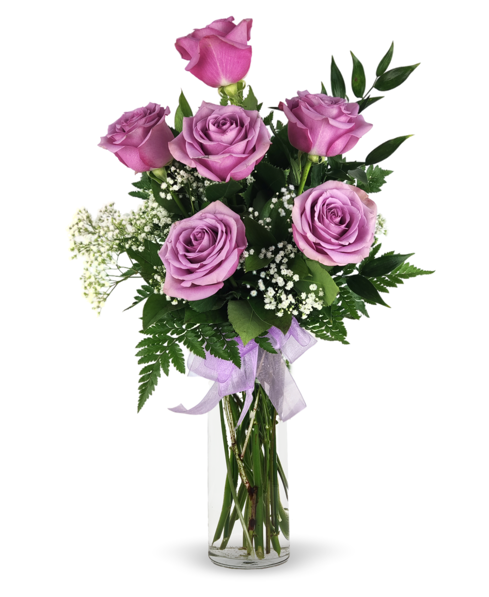 A single gesture can say so much. Six Roses, One Sweet Gesture offers your choice of soft pink or lavender roses, paired with delicate baby’s breath, lush greenery, and a color-coordinated satin bow. It’s a sweet and simple way to send love, appreciation, or a gentle hello.